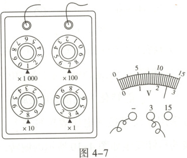 11. (2分)如图4-7所示的电阻箱接入电路的电阻是_Ω,电压表的读数是_V。