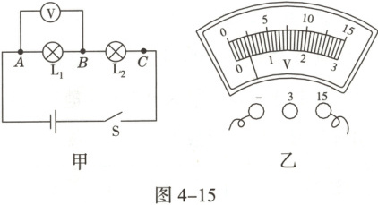 19. (8分)“探究串联电路的电压关系”的实验电路如图4-15甲所示。