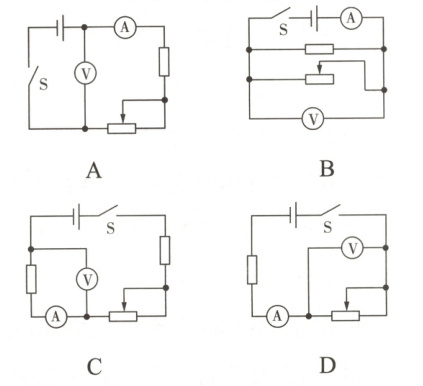 6. 某学习小组在一次实验中利用电压表和电流表测量出了多组数据,并记录在表中,请根据表中给出的数据,分析判断出他们实验时所使用的电路图可能是下列电路图中的()