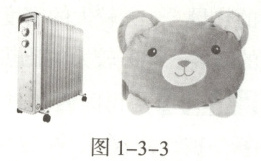 9. 如图1-3-3所示是电暖气和暖手宝,电暖气充入的是比热容小的液体,是为了通电后升温速度(选填“快”或“慢”);而暖手宝要充入比热容大的液体,是为了使它在一次通电加热后可以放出更(选填“多”或“少”)的热量。