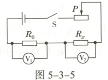 5. 用如图5-3-5所示的电路来测量未知电阻$R_x$的阻值,$R_0$阻值已知。
