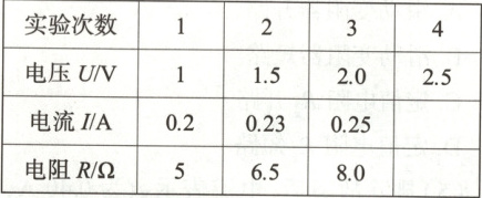 ③ 老师在检查数据时,分析发现,有一组数据有编造嫌疑,是第组,依据是按照这组数据,此时滑动变阻器的阻值应该为$\Omega$,已经超过滑动变阻器的最大阻值。
