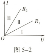 3. 有两个阻值不同的定值电阻$R_{1}$、$R_{2}$,它们的电流随电压变化的$I - U$图线如图5 - 2所示。如果$R_{1}$、$R_{2}$串联后的总电阻为$R_{串}$,并联后的总电阻为$R_{并}$,则关于$R_{串}$、$R_{并}$的$I - U$图线所在的区域,下列说法中正确的是()