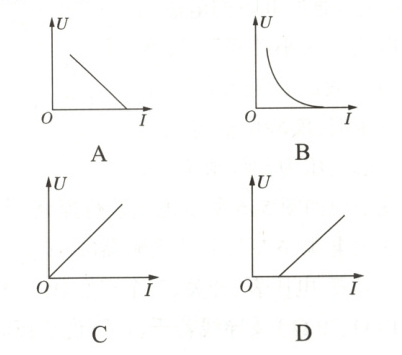 5. 如图5 - 4所示电路中,电源电压不变,$R_{1}$为定值电阻,$R_{2}$为滑动变阻器。闭合开关S,移动滑片P,多次记录电压表示数U和对应电流表示数I,则下列绘出的$U - I$关系图像中正确的是()