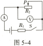 4. 如图5 - 3所示电路,电源两端电压保持不变,闭合开关S,当滑动变阻器的滑片向右滑动时,下列判断正确的是(