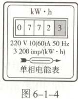 13. 小龙家上月初电能表数字显示为07043,上月末的示数如图6-1-4所示,表盘上“3200imp/(kW·h)”表示每消耗1kW·h的电能,指示灯闪烁3200次,下列选项正确的是()
