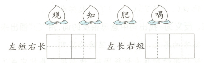 一、仔细观察下面的汉字,再分类写在田字格里。