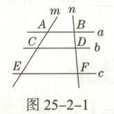 1. 如图 25 - 2 - 1,已知直线 $ a // b // c $,直线 $ m $,$ n $ 与直线 $ a $,$ b $,$ c $ 分别交于点 $ A $,$ C $,$ E $,$ B $,$ D $,$ F $,$ AC = 4 $,$ CE = 6 $,$ BD = 3 $,则 $ BF = ($ )