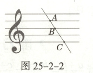 2. 学科融合 五线谱是一种记谱法,通过在五根等距离的平行线上标以不同时值的音符及其他记号来记载音乐,如图 25 - 2 - 2,一条直线上的三个点 $ A $,$ B $,$ C $ 都在五线谱的线上,若 $ AB $ 的长为 3,则 $ AC $ 的长为( )