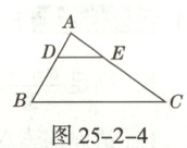 4. 如图 25 - 2 - 4,在 $ \triangle ABC $ 中,$ DE // BC $,$ AD = 2 $,$ AB = 6 $,$ AE = 3 $,则 $ AC $ 的长为______。