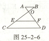 6. 如图 25 - 2 - 6,已知 $ AD $,$ BC $ 相交于点 $ O $,$ AB // CD // EF $,如果 $ CE = 2 $,$ EB = 4 $,$ AF = 3 $,那么 $ AD = $______。