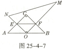 8. 探究性试题 如图25 - 4 - 7,在Rt△ACB中,∠C = 90°,AC = BC,一块直角三角板的直角顶点O在AB边的中点上,这块三角板绕O点旋转,两条直角边始终与AC,BC边分别相交于E,F,连接EF,则在运动过程中,△OEF与△ABC的关系是( )