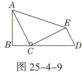 12. 如图25 - 4 - 9,在△ABC中,∠B = 90°,AB = 4,BC = 2,以AC为边作△ACE,使∠ACE = 90°,AC = CE,延长BC至点D,使CD = 5,连接DE.