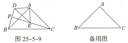 15. 如图 25 - 5 - 9,△ABC 和△ADE 是有公共顶点的等腰直角三角形,∠BAC = ∠DAE = 90°,点 P 为 BD 与射线 CE 的交点.