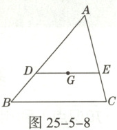 14. 如图 25 - 5 - 8,点 G 为△ABC 的重心,过点 G 作 DE // BC,分别交 AB,AC 于点 D,E,则△ABC 与△ADE 的周长之比为( )