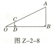 8. 如图 $Z - 2 - 8$ 所示,数学活动小组为了测量学校旗杆 $AB$ 的高度,使用长为 $2m$ 的竹竿 $CD$ 作为测量工具。移动竹竿,使竹竿顶端的影子与旗杆顶端的影子在地面 $O$ 处重合,测得 $OD = 4m$,$BD = 14m$,则旗杆 $AB$ 的高为______ $m$。