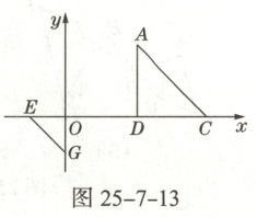 9. 如图25-7-13,△ADC是由等腰直角△EOG经过位似变换得到的,位似中心在x轴的正半轴上,已知EO=1,D点坐标为(2,0),相似比为1:2,则两个三角形的位似中心P点的坐标是( )