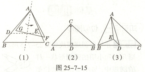 (1)如图25-7-15(2),在△ABC中,∠ACB=90°,AC<BC,CD⊥AB,垂足为D。下列3对三角形:①△ABC和△ACD;②△BAC和△BCD;③△DAC和△DCB。其中成自位似轴对称的是______。(填写所有符合要求的序号)