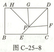 12. 如图C-25-8,在矩形ABCD中,DE平分$\angle ADC$交BC于点E,点F是CD边上一点(不与点D重合).点P为DE上一动点,$PE<PD$,将$\angle DPF$绕点P逆时针旋转$90^{\circ}$后,角的两边交射线DA于H,G两点,有下列结论: