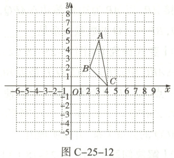18. (8分)在如图C-25-12所示的正方形网格中建立平面直角坐标系,$\triangle ABC$的三个顶点的坐标分别为$A(3,5)$,$B(2,2)$,$C(4,0)$.