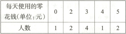 11. 某班开展以“提倡勤俭节约,反对铺张浪费”为主题的教育活动。为了解学生每天使用零花钱的情况,小明随机调查了 10 名同学,结果如下表: