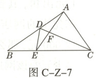 21. (9 分)如图 C-Z-7,在$\triangle ABC$中,点 D,E 分别在边 AB,BC 上,$BA· BD=BC· BE$。