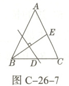 11. 如图C-26-7所示,在$\triangle ABC$中,$AB = AC$,$BC = 12$,$E$为$AC$边的中点,线段$BE$的垂直平分线交边$BC$于点$D$。设$BD = x$,$\tan \angle ACB = y$,则( )