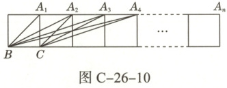 16. 如图C-26-10所示,把$n$个边长为1的正方形拼接成一排,求得$\tan \angle BA_1C = 1$,$\tan \angle BA_2C = \frac{1}{3}$,$\tan \angle BA_3C = \frac{1}{7}$,$\tan \angle BA_4C =$______,…。按此规律,写出$\tan \angle BA_nC =$______(用含$n$的代数式表示)。