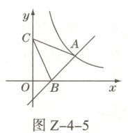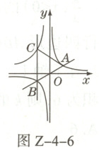 12. 如图 Z - 4 - 6 所示,过点$O$的直线$AB$与反比例函数$y=\frac{k}{x}$的图像交于$A$,$B$两点,$A(2,1)$,直线$BC// y$轴,与反比例函数$y=\frac{-3k}{x}(x<0)$的图像交于点$C$,连接$AC$,则$\triangle ABC$的面积为______。
