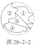 5. 情境题 小明不慎把家里的圆形玻璃打碎了,其中四块碎片如图 28 - 2 - 2 所示,为配到与原来大小一样的圆形玻璃,小明带到商店去的一块玻璃碎片应该是( )