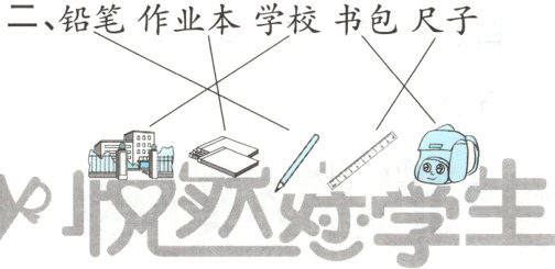 二、铅笔 作业本 学校 书包 尺子