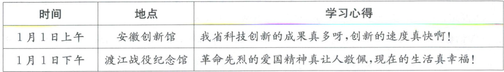 1. (合肥五十中期末)2025年元旦当天,七年级小安同学跟随父母在合肥市内进行了一次“文化之旅”的研学活动,下面是他的研学记录,说明了(