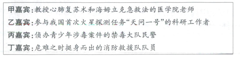 10. (合肥长丰县模拟)某中学为开展主题为“增强安全意识,提高安全防范能力”的系列宣讲活动,拟邀请宣讲嘉宾三人。你认为邀请名单必须包括下列哪几位嘉宾(