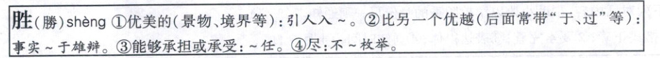 (4) 小冀拿不准“美不胜收”中“胜”的含义,请你根据在字典里查到的资料,帮他选出正确的释义:____。(只填序号)(2 分)