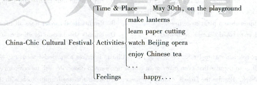 I know you are interested in Chinese culture. Here is good news for you. Our school will hold the China-Chic Cultural Festival at 2:00 pm on May 30th on the playground. I’m so glad to invite you to the festival. It’s a great chance for you to learn more about Chinese culture.