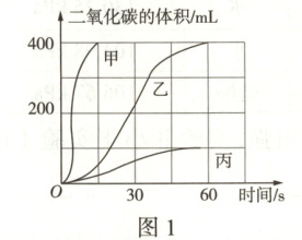 (1)选用试剂。按下表进行实验,取等质量的大理石加入足量酸中(杂质不与酸反应),产生二氧化碳体积随时间变化曲线如图 1 所示。