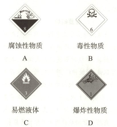 3. 以下是四种常用的危险品标志,在装运酒精(乙醇)的包装箱上应贴的标志是(