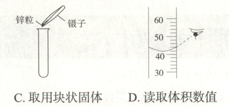 7. 某同学取 8 mL 水并加热,提供的仪器有:① 10 mL 量筒、② 100 mL 量筒、③酒精灯、④容积为 20 mL 的试管、⑤容积为 30 mL 的试管、⑥试管夹,所选用仪器组合正确的一组是(