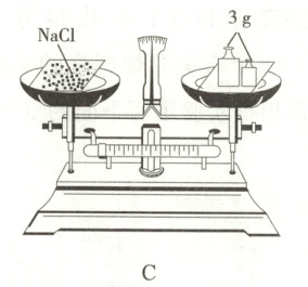 。(3)如图 C 所示,在称量 3 g 氯化钠的操作过程中,发现指针向右偏,则继续进行的操作是