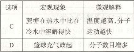 4. 宏观辨识与微观探析是化学学科的核心素养之一,下列对宏观现象的微观解释不正确的是(