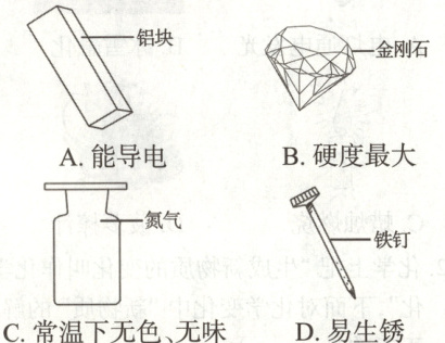 7. 下列所涉及物质的应用中,体现物质物理性质的是(