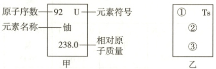 4. 某元素原子核外电子数为 117,中子数为 174,相对原子质量为 291,元素符号为 Ts。请模仿甲,将该元素对应信息填写到图乙中相应位置,“①”处应填(