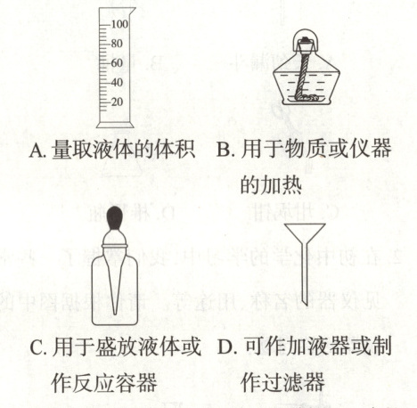 11. 如下是初中化学实验室部分常用仪器,其对应用途有误的是(