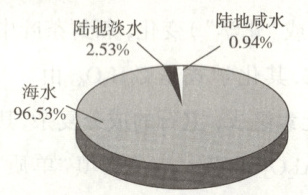 1. 根据如图所示全球海水、陆地水储量比,下列说法错误的是(