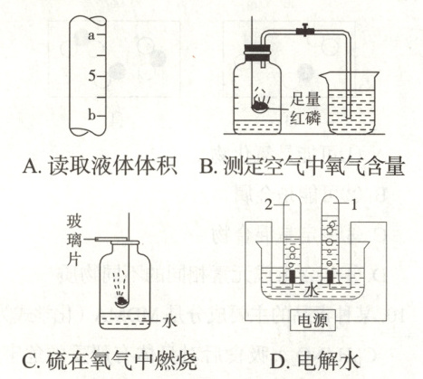 (1)A 实验中用 10mL 量筒量取 6mL 蒸馏水,读数时量筒内的液体凹液面最低处应与 A 图中
