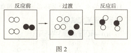 (2)如图2所示是某个化学反应的微观模拟示意图,$◯$表示一种原子,$◯$表示另一种原子。根据从图中获得的有关信息回答下列问题: