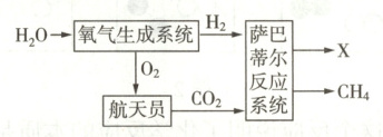 (3)在萨巴蒂尔反应系统中,发生的反应为$CO_{2}+4H_{2}\overset{催化剂}{=}2X+CH_{4}$,则$X$的化学式为