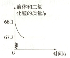 17. (5分)某化学兴趣小组用一瓶久置的过氧化氢溶液制取氧气并测量过氧化氢的质量分数。称量$68g$过氧化氢溶液和$0.1g$二氧化锰进行实验,液体和二氧化锰的质量随时间变化关系如图所示。