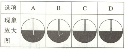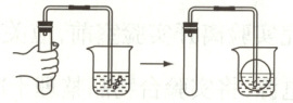 12. 如图所示,小刚同学采用手握试管外壁的方法检查装置的气密性,若装置的气密性良好,则将手移开一会儿后,烧杯内导管处(画圈部分)的现象是(