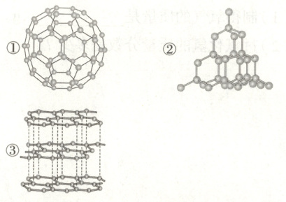。(2) 下列结构图中,依次表示金刚石、石墨和 $ C_{60} $的是